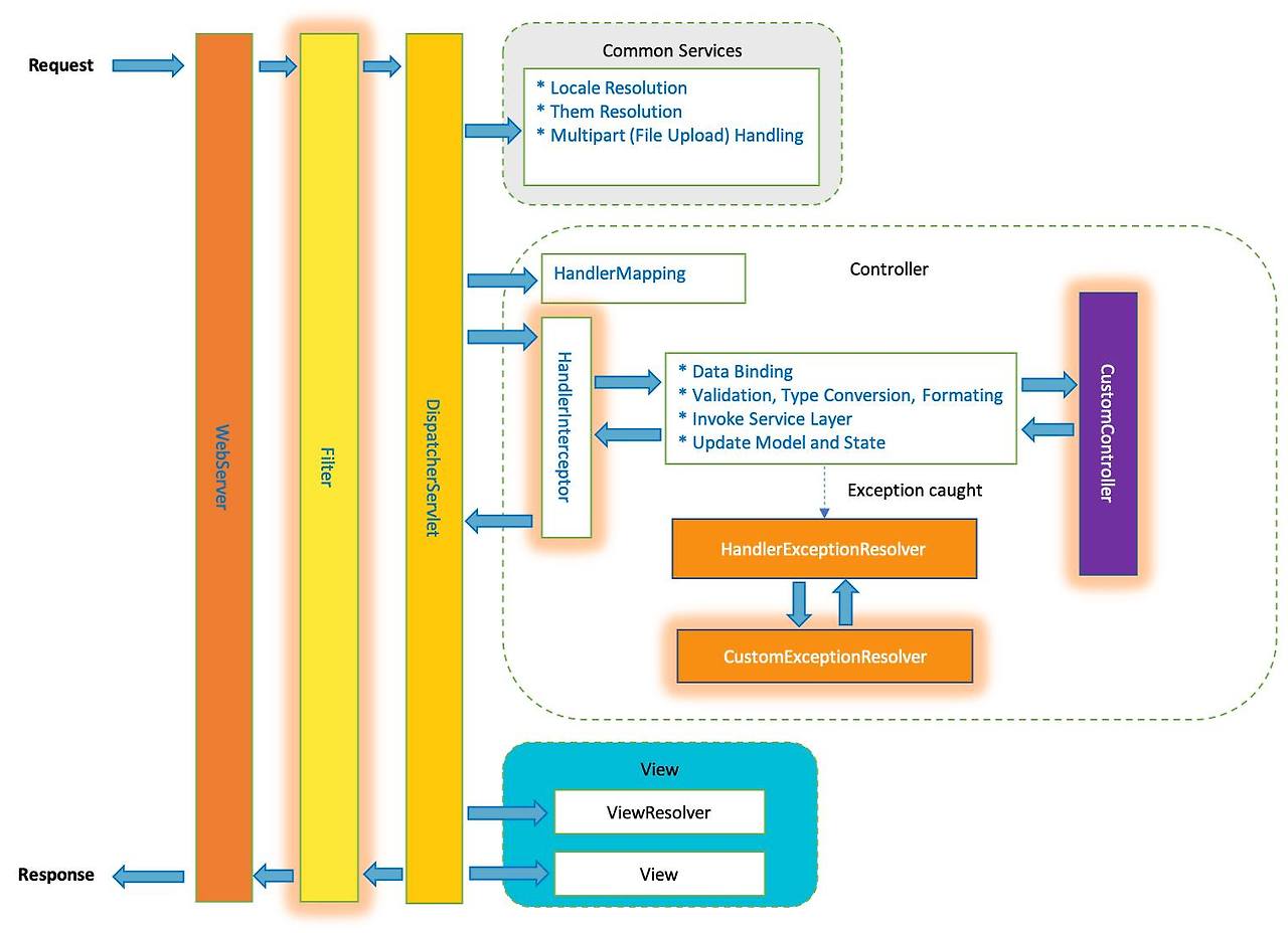 스프링 MVC에서 가장 주요한 사실은 모든 요청 Request이 반드시 DispatcherServlet이라는 존재를 통해서 실행