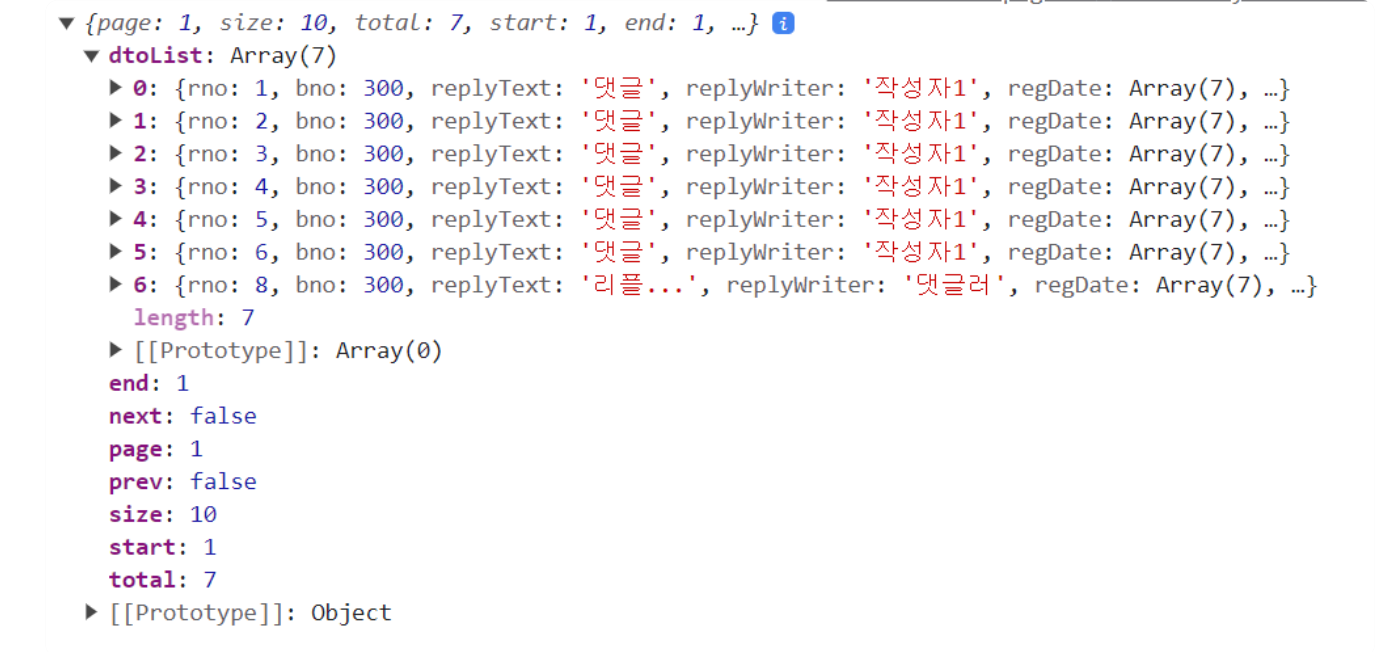 printReplies(1, 10, true); // 댓글 목록 갱신
