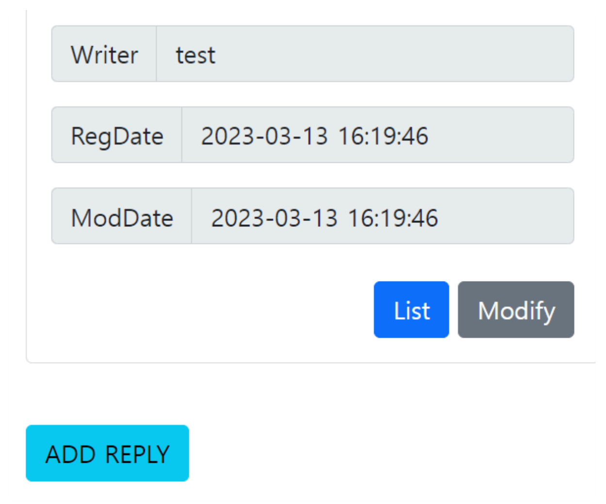 댓글 조회는 등록과 유사하게 모달창을 이용해서 수정이나 삭제가 가능한 버튼들을 보여주는 형태로 구성